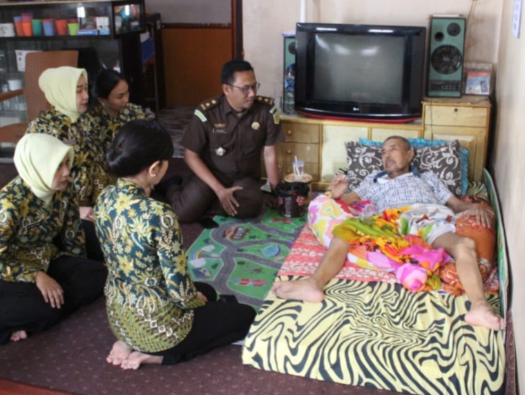Menutup kegiatan Anjangsana, rombongan Kejari Tanbu kemudian menyerahkan santunan dan bantuan kepada Sabransyah.