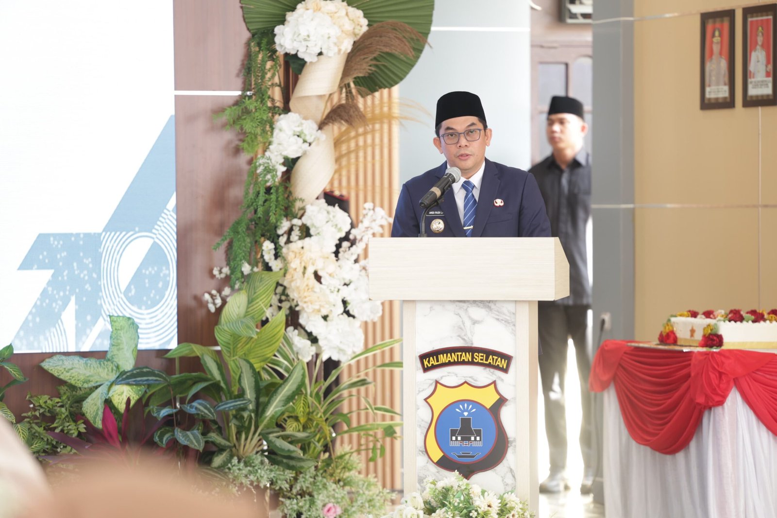 Foto sambutan Bupati Tanahbumbu Andi Rufi Latif, dalam acara syukuran hari Bhayangkara ke-79 di Mapolres Tanah Bumbu, Selasa kemarin.