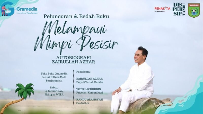 Banjarmasin, wartabanua.com – Zairullah Azhar, nama yang sedang moncer belakangan ini akan hadir di Gramedia, Duta Mall Banjarmasin, Sabtu siang (13/1/2023). Dia akan meluncurkan buku autobiografinya, Melampaui Mimpi Pesisir.